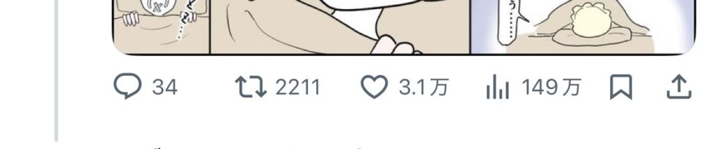 とある大御所漫画家の方が「今Xでは長いツリーの漫画がバズりやすいです」とスペースで話されているのを耳にして、急いでイイ感じの長さの漫画を投稿。